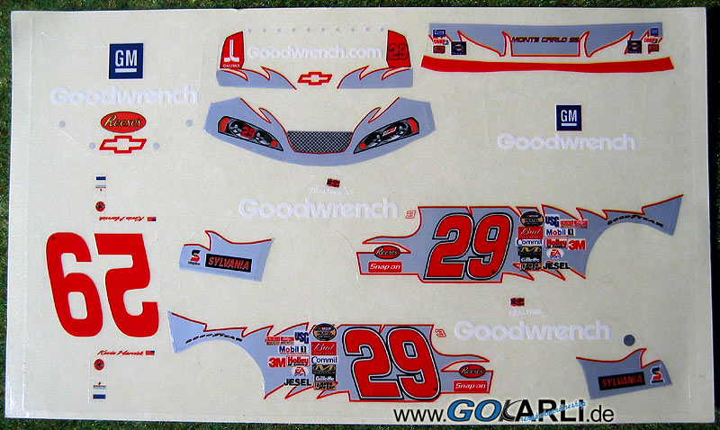 Aus dem Set 62159 Nascar Batterie, wurde mit Decals ausgeliefert, das Fahrzeuge ist mit einem 6 Volt-Motor ausgestattet.