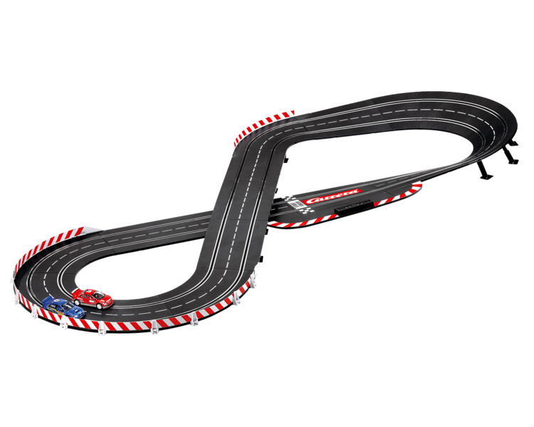 Die einzigartige Kombination des Schienenmaßstabs 1: 24 mit Fahrzeugen im Maßstab 1: 32 läßt optimale Kurvenfahrten zu. Durch die Schienenoberfläche und -breite sowie die stufenlos verstellbaren Magneten der Fahrzeuge kann absolut realitätsnah gedriftet werden.