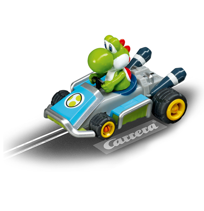 It’s Mario time! However, Yoshi and his kart are also a force to be reckoned with. Whether you drive with Yoshi or Mario, you'll never have less than 100% racing fun around the 4.9-meter Carrera GO!!! circuit! The broad-tire karts are an absolute joy to drive over the fly-over and round the high-speed loop. It's pedal-to-the-metal time for all-action racing! When Mario and Yoshi are out on the track with their Carrera cars - anything can happen. The Carrera GO!!! Mario versus Yoshi set is a guarantee for action and fun at home!