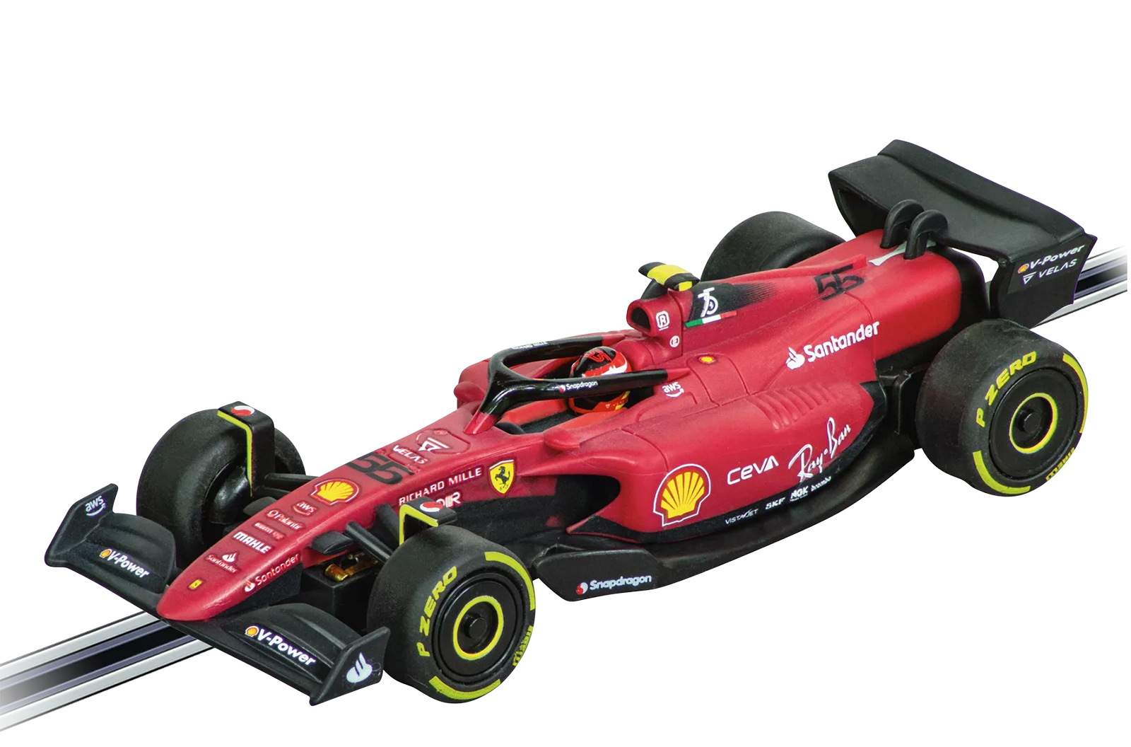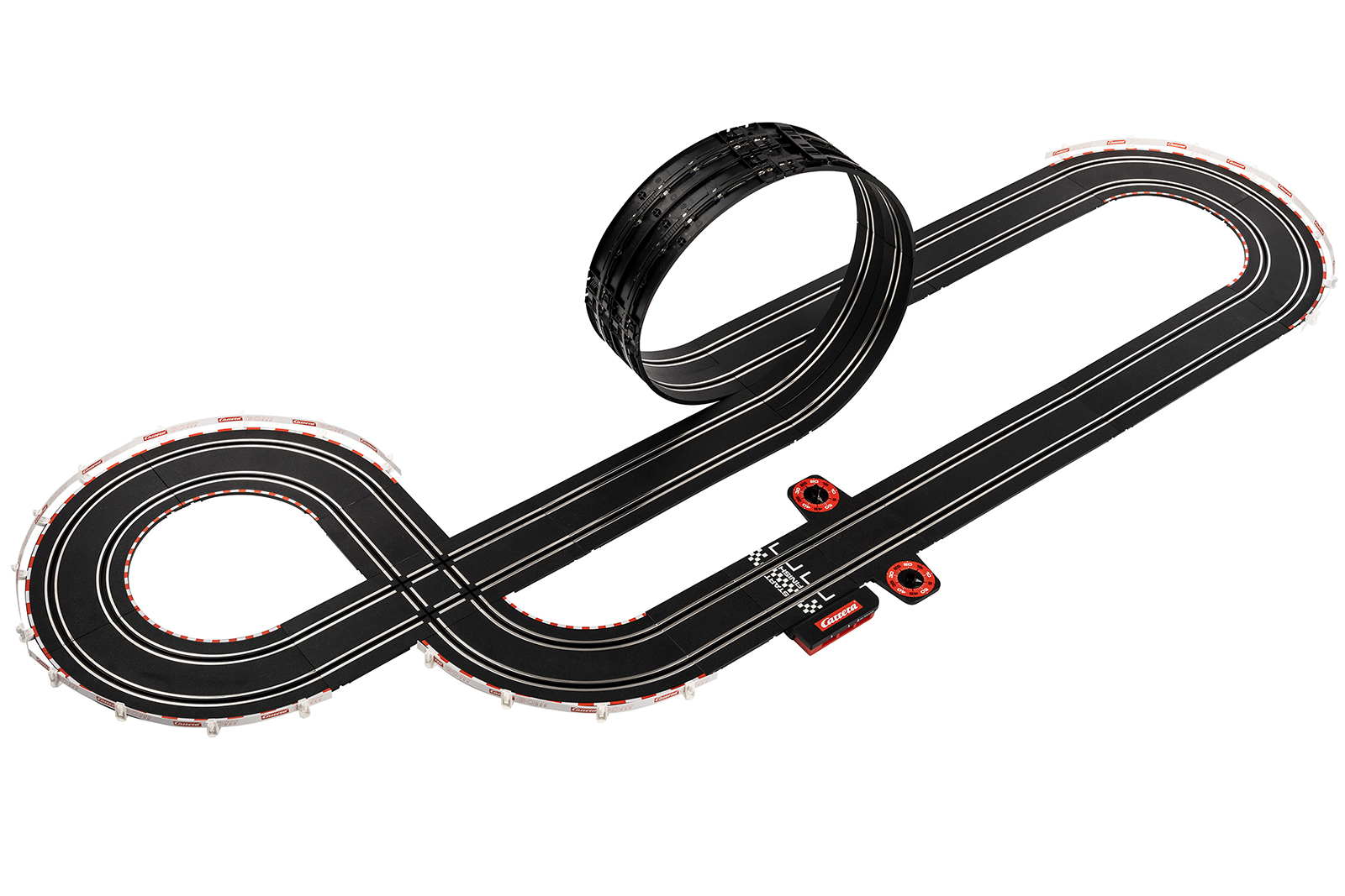 5,3 Meter puren Rennspaß verspricht das Carrera GO!!! Set „Speed Competition". Rennpiloten ab 6 Jahren können sich auf reinen Formel 1-Fahrspaß freuen. Bei „Speed Competition" düsen der Formel 1 Alpine „Alonso, No.14" und der Formel 1 Ferrari „Sainz, No.55" genau wie ihre großen Vorbilder über die Rennstrecke und geben alles, um als erster die Ziellinie zu überqueren. Besondere Freude machen die lange Gerade, Looping, Kreuzung und Steilkurve. Dank des Rundenzählers wissen sowohl die Piloten am Handregler als auch die Zuschauer in der Nähe immer genauestens, wer gerade auf der Poleposition liegt. Der Looping und die Kreuzung verlangen Präzision am Handregler - für den geübten Junior Rennpiloten gar kein Problem.