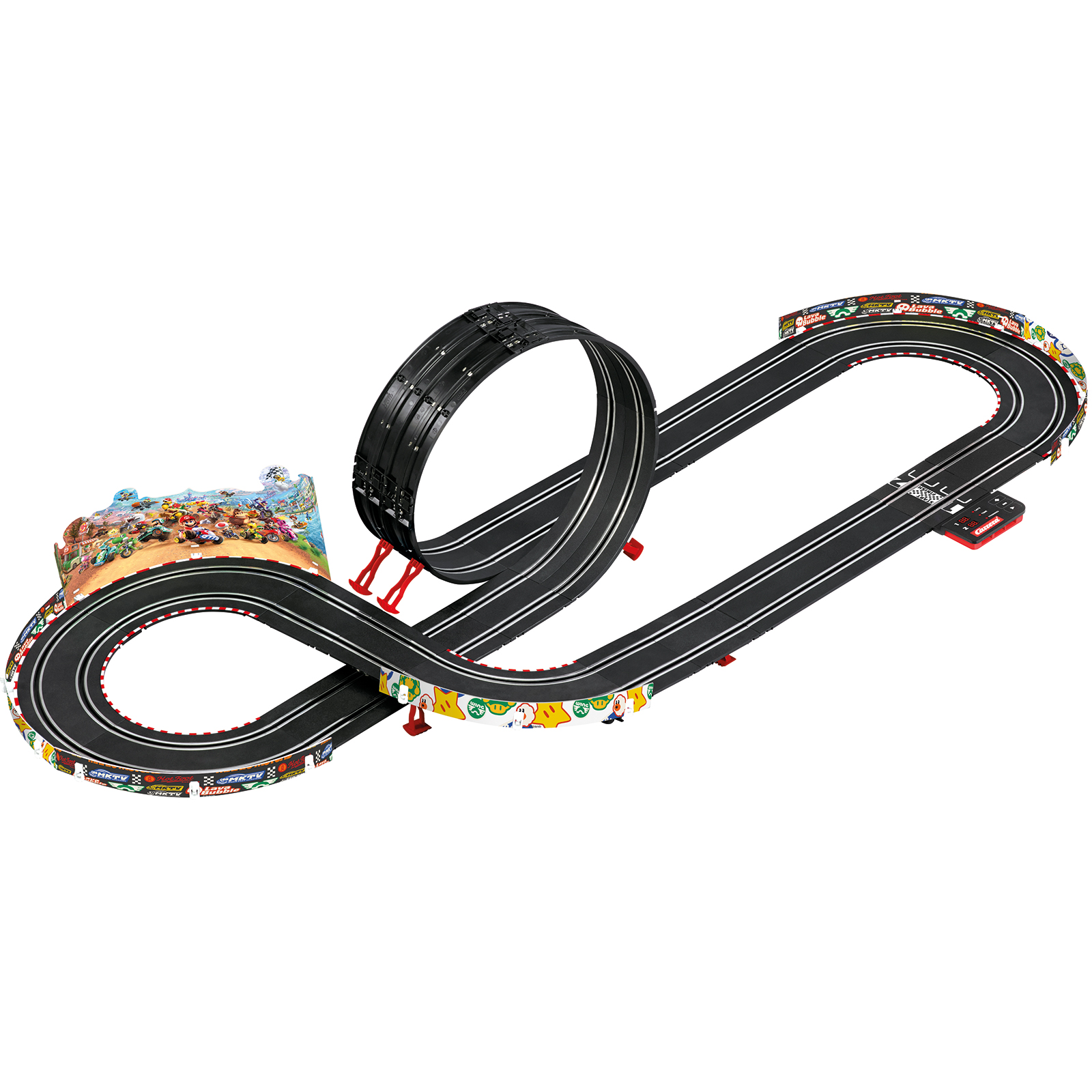 Mit dem Carrera GO!!! Set „Mario Kart™ WORLD“ wird jeder selbst zum Mario Kart™ Piloten. Auf 4,9 Metern Streckenlänge liefern sich Mario und Yoshi in ihren originalgetreuen Mario Kart™ World Fahrzeugen packende Kopf-an-Kopf-Rennen. Mit Höchsttempo geht es durch Kurven und über Highspeed-Geraden, der Looping sorgt dabei für zusätzlichen Nervenkitzel. Im Maßstab 1:43 sausen die beiden Kultfiguren über die Strecke und bringen jede Runde in Fahrt. Ein Rennset, bei dem Mario und Yoshi im direkten Duell alles geben, um als Erste die Ziellinie zu überqueren. Kinder ab 6 Jahren erleben dabei genauso wie Erwachsene rasanten Rennspaß. Das neue Power Modul mit elektronischem Rundenzähler und LED-Anzeige erweitert das Racing um verschiedene Rennmodi, wählbare Geschwindigkeitsstufen sowie eine Bedienung per Sensor-Taster und Stromversorgung über USB-C!