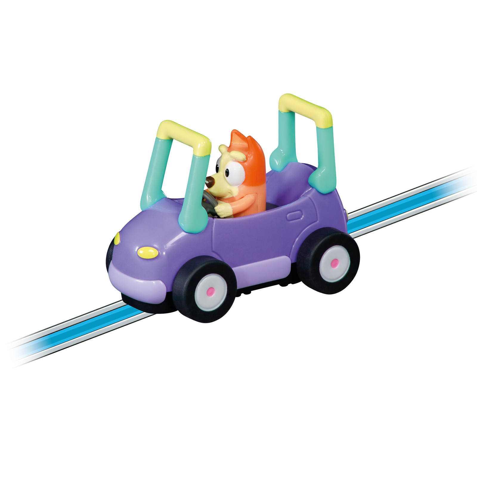 Das Carrera FIRST Set "Let's Go" für Kleinkinder ab 3 Jahren sorgt für pünktliche Lieferung des Abendessens – durch Heeler Welpe Bluey aus der gleichnamigen TV-Serie und ihre jüngere Schwester Bingo, die in Windeseile über die 2,9 Meter lange Spielbahn sausen. Dank Deko-Elementen, die an das Setting der Serie erinnern, tauchen die Kids beim Spielen mitten hinein in die Welt der Hundefamilie Heeler. Lange Geraden, knifflige Kurven und ein witziges Flip-Element sorgen für endlosen Spielspaß. Die ergonomischen Regler, speziell für Kinderhände entwickelt, und die batteriebetriebene Bahn, die sich einfach auf- und abbauen lässt, sorgen für stundenlangen Spielspaß und begeistern kleine Rennfans immer wieder aufs Neue.